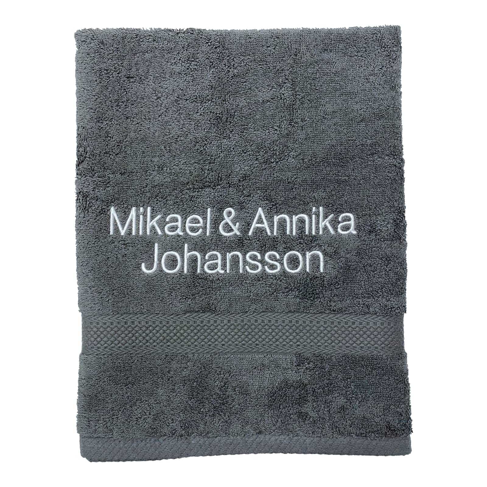 Handduk med namn - Grå - Rak text